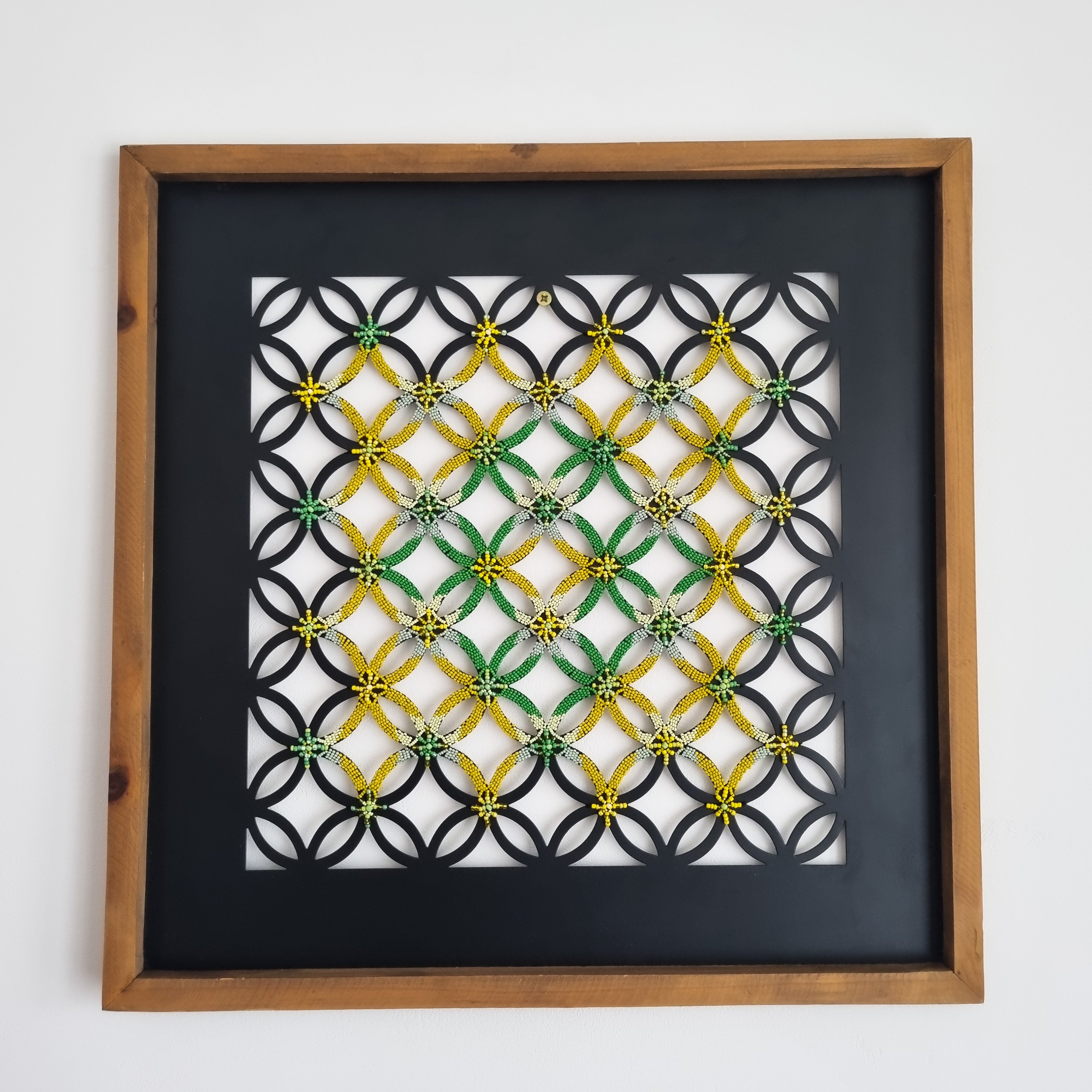 Bijou de Mur . Origine Catégories : Tous Bijoux Tissés Bijoux Brodés Bijoux Brodés et Tissés Bijoux d'oreilles Bijou de cou Bijou de main Bijou de tête Broche Cérémonie Collection unique Décorations Bijou de Vase . Haty Bijou de Mur . Origine T-Shirt Ethique et Stylé T-Shirt . Le Basic Tous / Décorations / Fleur de vie perlée Origine doré Origine vert